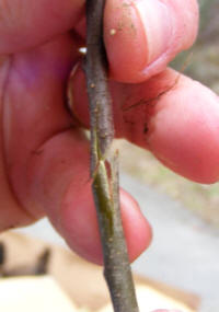 Injerto de cuña o hendidura (a la derecha, con dos púas)