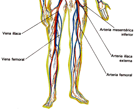 Finalmente, por encima de la pelvis se originan y bifurcan las ilíacas, tanto internas como externas, las cuales irrigan los órganos pelvianos y miembros inferiores.