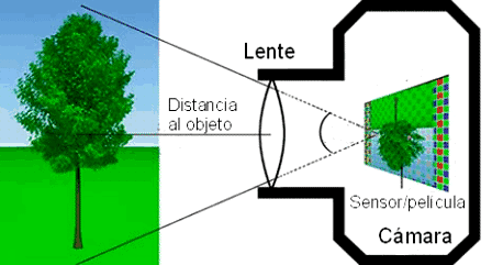 En ambos ejemplos, tanto la imagen formada en la retina como en la película se proyecta invertida, es decir, si visualizamos un árbol éste se proyecta con la copa hacia abajo y la base hacia arriba, sin embargo, en el ojo humano esa característica es interpretada correctamente tras ser enviada por el nervio óptico hasta el lóbulo de la corteza cerebral correspondiente. Por su parte, la mayoría de cámaras permiten ajustar el enfoque del objeto que se desea impresionar; en el ojo esa función la llevan a cabo los músculos ciliares del cristalino, que acomodan el ojo para enfocar los objetos según la distancia a que se encuentren.