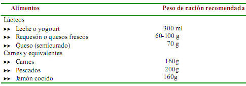 Tabla de pesos netos de las raciones individuales de alimento para gestantes-lactantes
