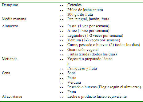 Menú tipo que pueden orientar en el diseño de dietas
