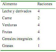 En porciones o raciones en un día se puede establecer como aparece en el gráfico siguiente: