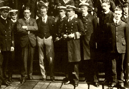 De izquierda a derecha: Armitage, Mulock, Shackleton, Wilson, Skelton, Scott, Royds, Koettlitz, Bernacchi, Ferrar, a bordo del discovery