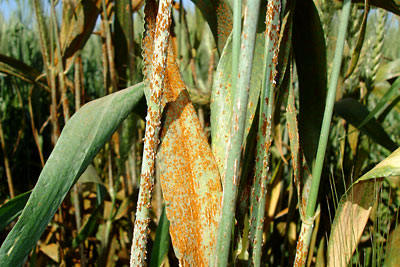 Hojas y tallos gravemente afectados por puccinia graminis
