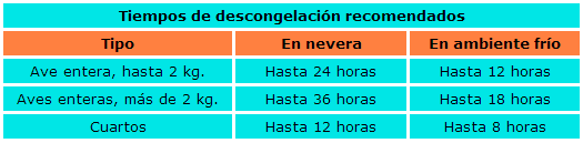 letra capitular El pollo congelado es esencial descongelarlo perfectamente antes de guisarlo, ya que el calor no penetraría uniformemente y podría quedar crudo en las zonas próximas a los huesos, pudiendo resultar dañino.