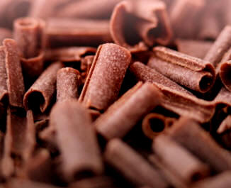 Se pueden adquirir, pero puede obtenerlos rascando hacia usted con un pelador de verduras, sobre el canto apoyado de una tabla de chocolate. Úselos en la misma forma que el chocolate rallado.