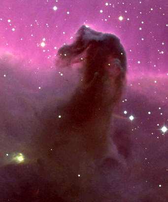 Si observamos el arco de nuestra galaxia podemos distinguir toda una sucesión de nebulosas oscuras. La más famosa de ellas es la Cabeza de Caballo en Orión; su nombre es debido a que otra región de nebulosas más brillantes que se sitúan detrás de ella, le marcan un perfil en forma de cabeza de caballo.