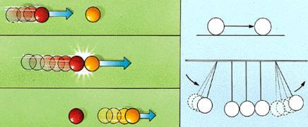segundo: la bola que está en movimiento se para al chocar con otra, y ésta