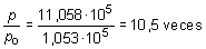 El número de veces que p es superior a la presión exterior po se obtiene hallando el cociente entre ambas: