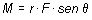 siendo F la magnitud de la fuerza, r la distancia entre el punto O y el punto P de aplicación de F y q el ángulo que forma Fcon el segmento . Se expresa en unidades de fuerza por unidades de distancia, es decir, en newtons por metro (N · m), en el Sistema Internacional.