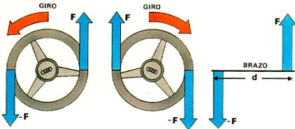 Cuando a un sólido se le aplica un par de fuerzas, se produce una rotación cuyo sentido depende de la orientación del par. La magnitud física que se relaciona con esos efectos de rotación reciben el nombre de momento.