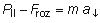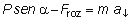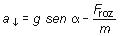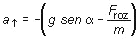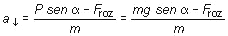 Por tanto, las únicas fuerzas efectivas son P|| y Froz, ambas dirigidas en la dirección del plano, pero en sentidos opuestos. Tomando como sentido positivo el del movimiento, la magnitud de la fuerza neta resultante será P|| - Froz y la aplicación de la segunda ley dará como resultado:![]()