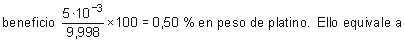 El astuto comerciante podría entonces obtener con la operación unas ganancias de 1,003 - 0,998 = 5 · 10-3 g de platino por cada gramo, lo que supone un