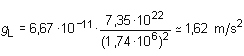 Esa nueva relación que representa la ecuación (2.13) permite, además, hacer predicciones. Así, es posible calcular la aceleración gL con la que caerá un cuerpo sobre la superficie de la Luna, a partir del valor de su radio RL = 1,74 · 106 m y de su masa ML = 7,35 · 1022 kg, empleando una expresión análoga:
