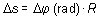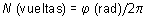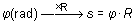 La magnitud fundamental es el ángulo barrido por el radio que une el punto móvil con el centro de la trayectoria circular, ángulo que se expresa en radianes (rad). Un radián es la unidad SI de medida de ángulo plano y se define como el ángulo central (con vértice en el centro de una circunferencia) cuyo arco correspondiente tiene una longitud igual al radio. Dado que la longitud de la circunferencia es igual a 2p veces el valor del radio, el ángulo central completo medirá 2p rad.A partir de la definición de radián se puede establecer una relación entre la longitud del arco, que en términos cinemáticos coincide con el espacio s, y el ángulo j. Así, expresar el ángulo j en radianes equivale a decir cuántas veces el radio R está contenido en la porción de arco s correspondiente, lo que en términos matemáticos se expresa en la forma: