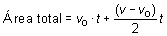 El espacio s recorrido por un móvil con movimiento uniformemente acelerado puede determinarse recurriendo a su interpretación como el área contenida bajo la gráfica v-t. Si la velocidad inicial vo es distinta de cero, dicha superficie tiene la forma de un rectángulo más un triángulo rectángulo añadido, es decir:
