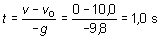 El tiempo que ha empleado el cuerpo en alcanzar esta altura máxima puede, asimismo, determinarse a partir de los datos iniciales. Se trata en este caso de identificar una fórmula que relacione v, g y t, siendo v y g conocidas; dicha expresión es