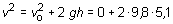 v2 = 2 · 9,8 · 5,1 = 10 m/s