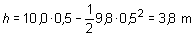 Es, asimismo, interesante saber calcular la altura que alcanzaría en la mitad del tiempo de ascenso. Como paso previo se han de identificar con claridad las nuevas incógnitas, así como los datos disponibles. Se conoce el tiempo t = 1,0/2, la aceleración g = 9,8 m/s2 y la velocidad inicial vo = 10,0 m/s y se desea averiguar la altura h; la ecuación que relaciona tales magnitudes es: