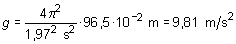 Sustituyendo en la expresión de g obtenida a partir de la ley del péndulo simple los valores de la longitud y del periodo expresados en unidades SI, se tiene: