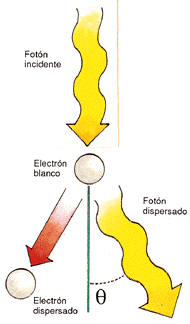 Aplicando estas leyes de conservación entre partículas, Compton predijo una variación en la longitud de onda que coincidía con los resultados experimentales. Los fotones de la radiación X incidente, al chocar contra los electrones de la superficie del material utilizado como blanco o diana, les cedían parte de su energía y de su cantidad de movimiento y, de acuerdo con la ecuación de Planck E = hf, ello suponía una disminución en la frecuencia f, o lo que es lo mismo, un aumento en la longitud de onda observada.