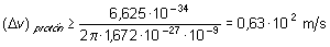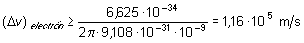 Nótese la magnitud de los errores que se producirían al intentar medir la velocidad de ambas partículas. El hecho de que estén confinadas en un pequeño espacio, con su posición por tanto bien determinada, hace que el error en la variable v sea considerable.