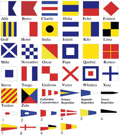 Serie de signos o señales empleados para comunicarse entre sí dos buques, un buque y un avión o un buque y una estación de tierra. Los alfabetos convencionales son los utilizados mediante banderas de señales, proyectores y telégrafos ópticos y radioeléctricos. Los alfabetos que se emplean o han empleado más son el Morse (tanto para señales de radio como luminosas), por banderas y fonético OACI (para radiotelefonía).
