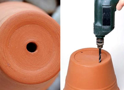 Los tiestos suelen venir con un agujero para drenar el agua sobrante, pero en caso de no existir puede practicarse uno o más utilizando un taladro