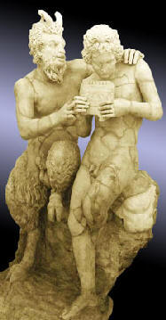 Escultura hallada en Pompeya, datada del 100 a.C., que representa como Pan enseña a Dafnis a tocar la zampoña