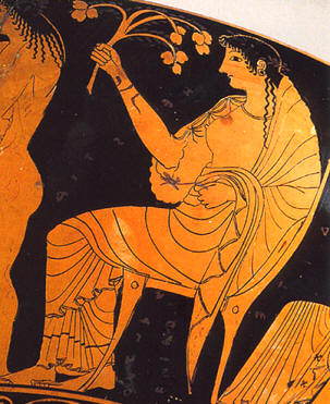 Hestia, representada en un vaso del 525-475 d.C. - Museo Nazionale Tarquiniese
