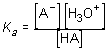 HA + H2O  < >  A-(aq) + H3O+(aq)