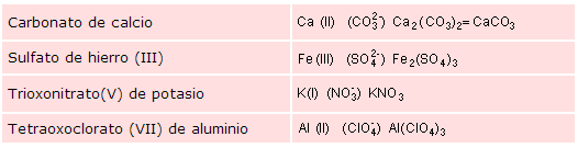 La fórmula del anión se obtiene haciendo perder a la del ácido sus átomos de hidrógeno y asignándole por consiguiente igual número de cargas negativas. En cuanto al nombre, se obtiene cambiando la terminación -oso del ácido por -ito y la -ico por -ato y sustituyendo la palabra ácido por la de ion. Los prefijos, si los hubiere, permanecen inalterados. Si se desea proceder utilizando la nomenclatura sistemática bastará anteponer al nombre del ácido la palabra ion y suprimir de hidrógeno. En la tabla 3 se muestran algunos ejemplos.