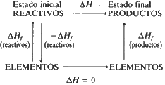 H = -Hf (reactivos) + 0 + Hf (productos)