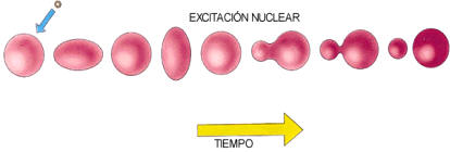 explica la fisión nuclear del siguiente modo: cuando un núcleo pesado recibe
