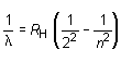 donde RH es la llamada constante de Rydberg cuyo valor es de 109 677,6 cm-1 y n toma los valores 3, 4, 5... La ventaja de esta expresión frente a la de Balmer consistía en sugerir la posibilidad de expresar el inverso de la longitud de onda de una línea dada o número de ondas como la diferencia entre dos términos numéricos T1 y T2: