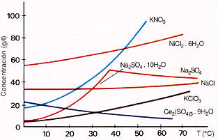 sustancia en un disolvente dado varía con la temperatura. La gráfica