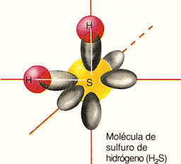 La teoría del enlace de valencia explica el enlace como la ocupación por un par de electrones de enlace de un mismo orbital, por lo que en este caso los electrones del hidrógeno comparten orbital con los del azufre.