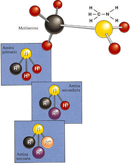En las aminas el grupo funcional se une al átomo de