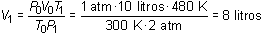 siendo V2 = 20 litros y T2 = T0 = 300 K. Luego: