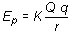 La energía potencial electrostática Ep entre dos cargas Q y q viene dada por la expresión: