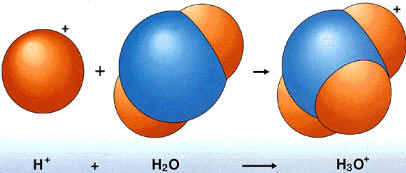 o del ion hidronio formado por la unión del ion hidrógeno con la molécula de agua H2O: