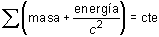 que indica que, en un sistema cerrado, la suma de las masas incrementada en el término equivalente de energía se mantiene constante.