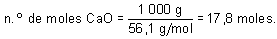 Dado que por cada mol de CaCO3 se obtiene uno de CaO, se necesitarán, pues, 17,8 moles de CaCO3.
