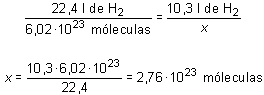 Recordando ahora que un mol de cualquier sustancia contiene 6,02 · 1023 moléculas, la segunda parte del problema se resuelve recurriendo ahora a la proporcionalidad entre volumen y número de moles: