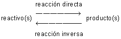 Sin embargo, con mayor frecuencia sucede que, a medida que los productos van haciendo su aparición en la reacción, tanto mayor es su capacidad para reaccionar entre sí regenerando de nuevo los reactivos. Cuando esto es posible en una reacción química, se dice que es reversible y se representa mediante una doble flecha, indicando así que la reacción puede llevarse a efecto tanto en un sentido como en el inverso: