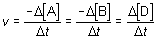 donde A y B representan los reactivos y C y D los productos, la velocidad se puede expresar, recurriendo a la notación de incrementos, en la forma: