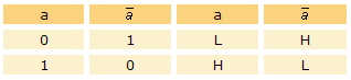 En este caso las variables son señales eléctricas de tensión alta (H de High) o baja (L de Low). A continuación se describe cada una de ellas con su correspondiente tabla de verdad.