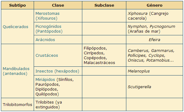 Los artrópodos: clasificación
